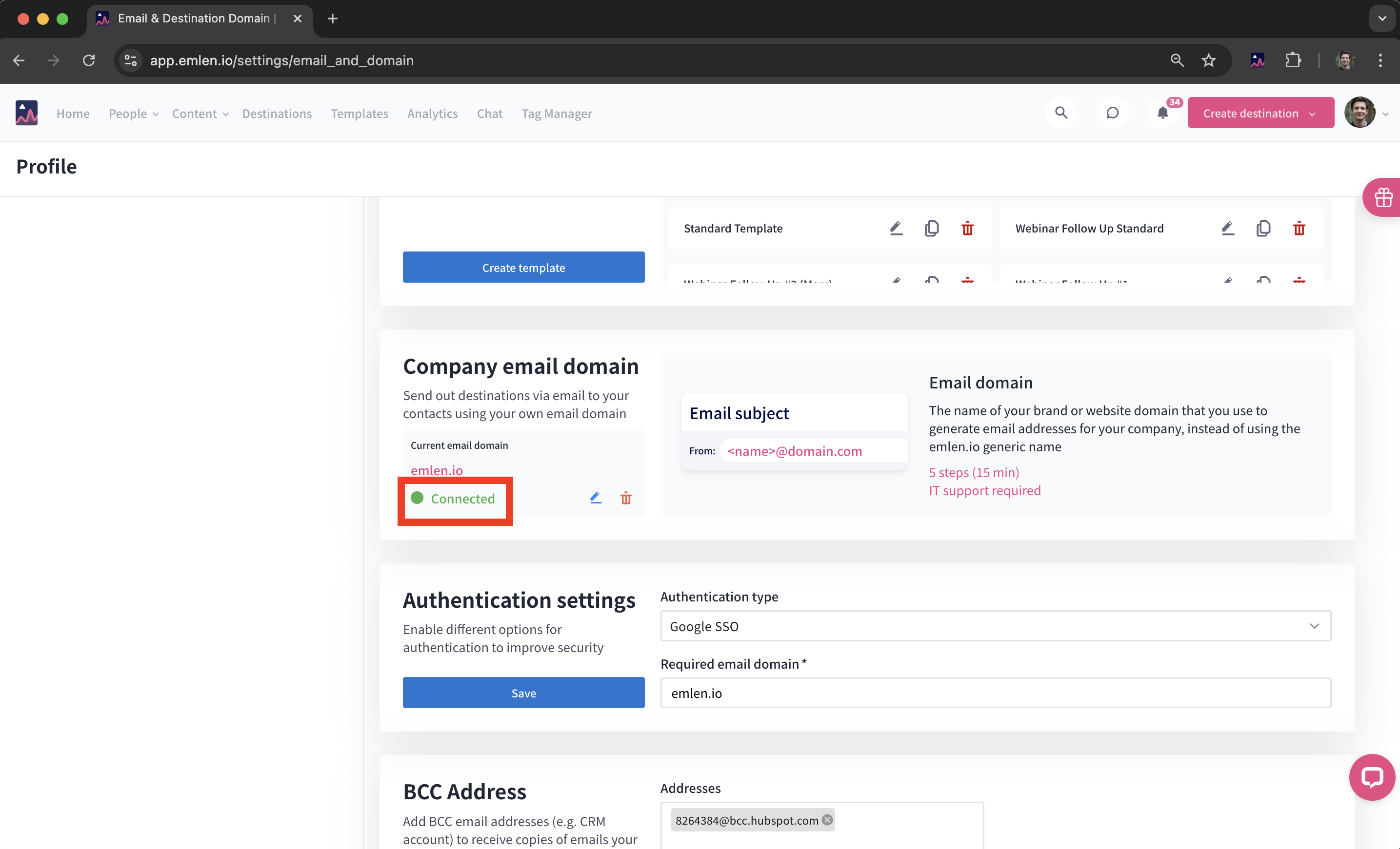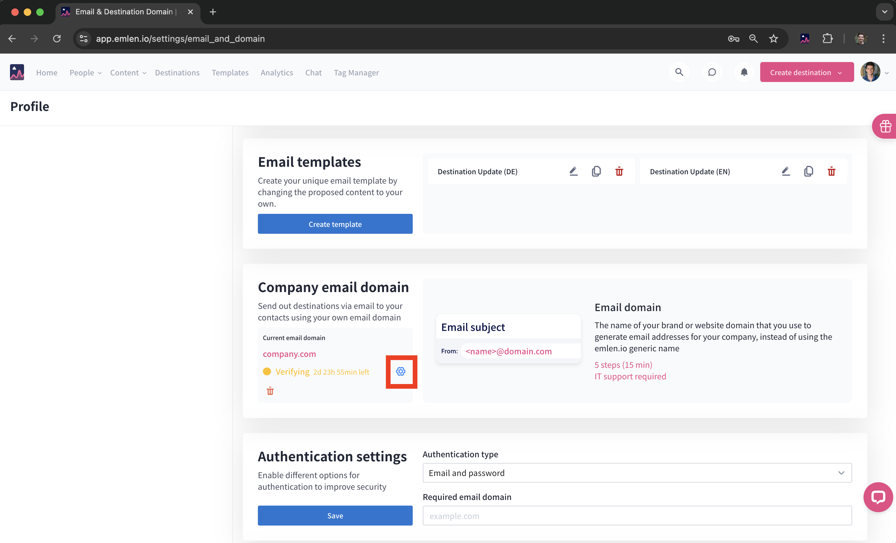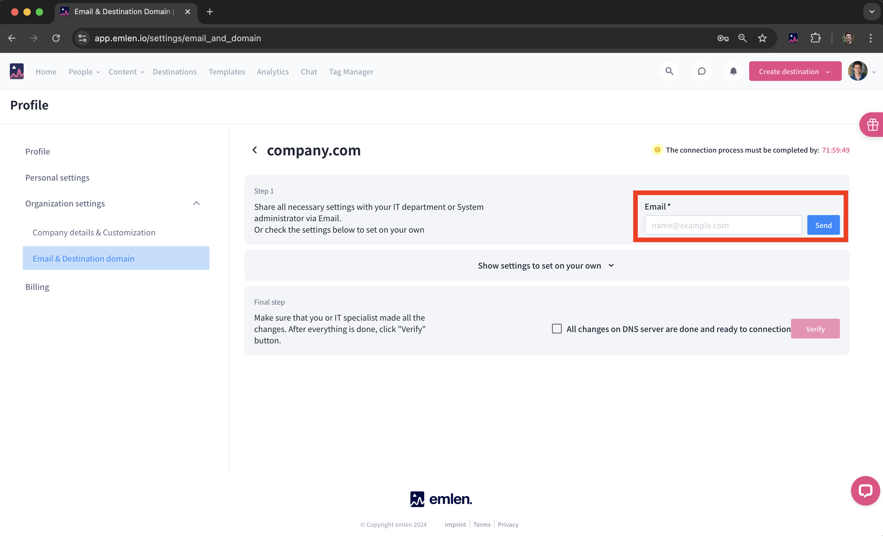 This guide will help you connect your company email domain to emlen so you can send emails (like Destination update notifications) from your business email via emlen.