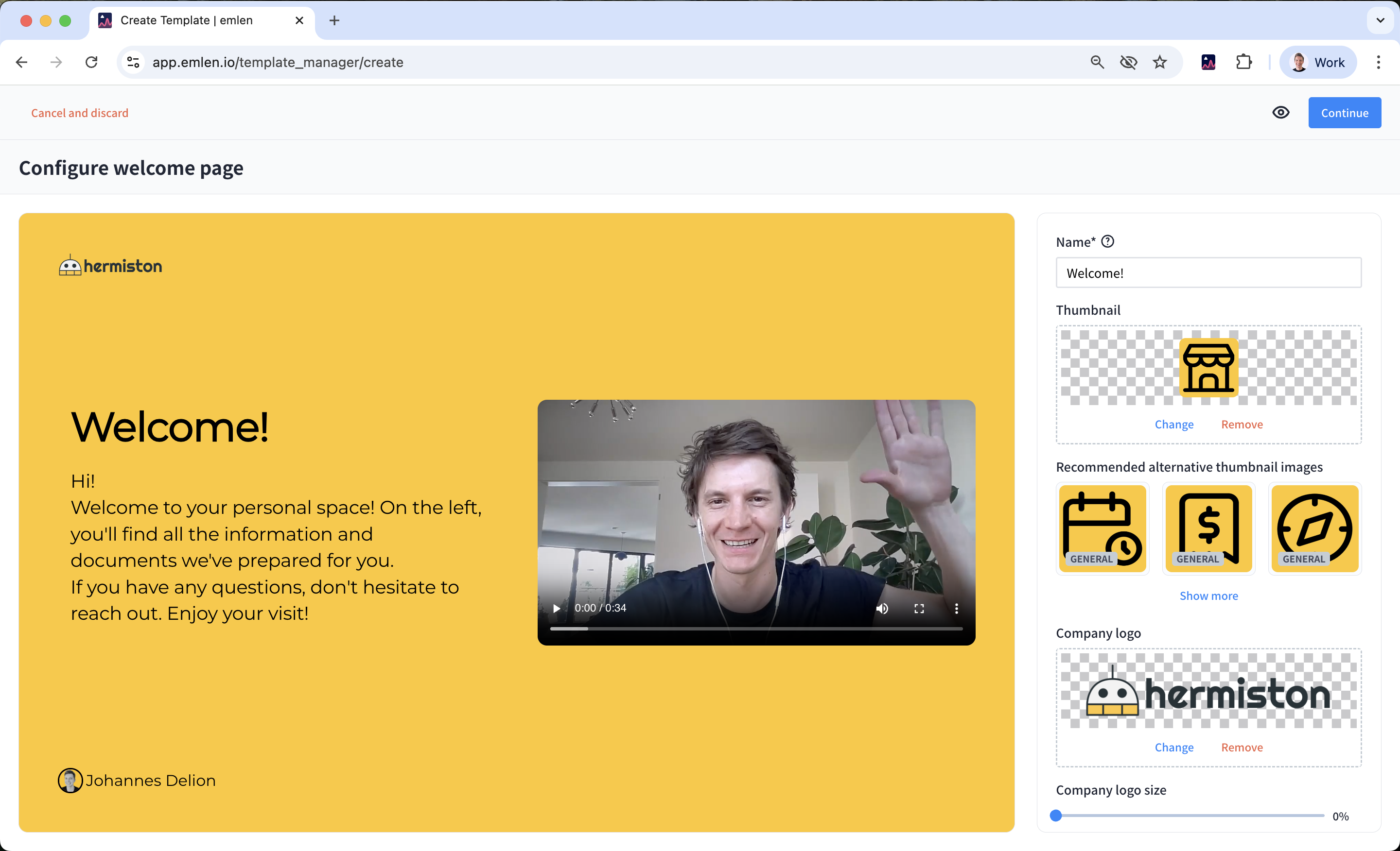 4. Add a welcome page - make it generic (no buyer logo or customer names at this stage, generic welcome video; customization will come later)