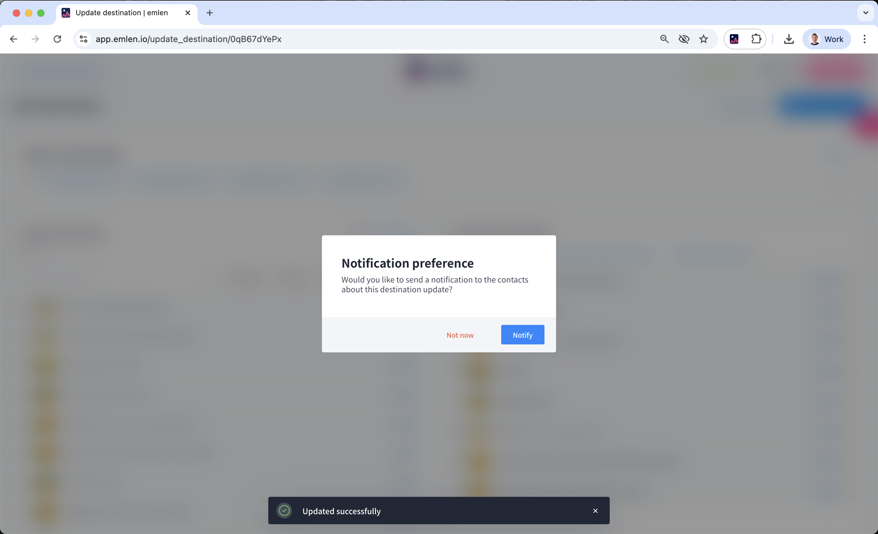 2. Click "Notify" to send a notification from emlen using an email template