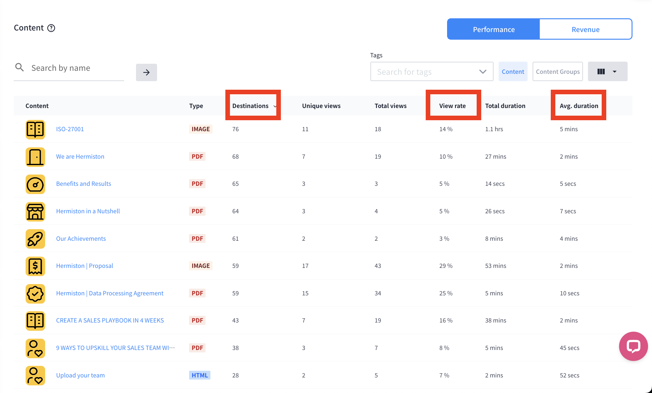 - Average Duration: How long do buyers engage with it? Compare this to the content length. If low, the content might need adjustments.