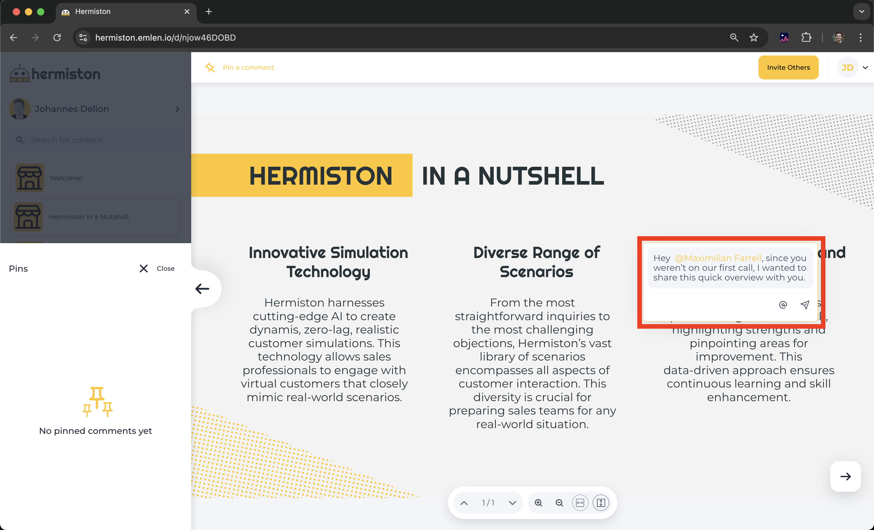 Guide stakeholders to the right content by tagging them in comments. They’ll receive email notifications prompting them to visit the shared Destination.