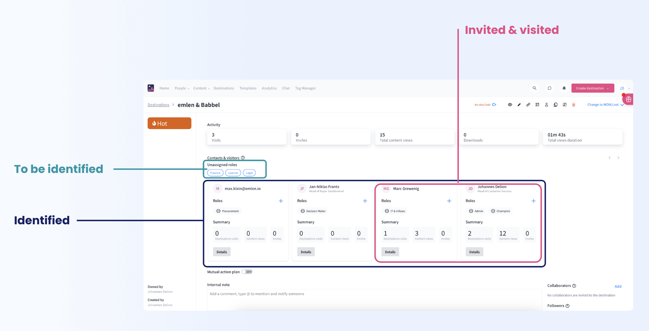 Pro Tip: With emlen you can identify additional stakeholders if your Destination is shared internally.