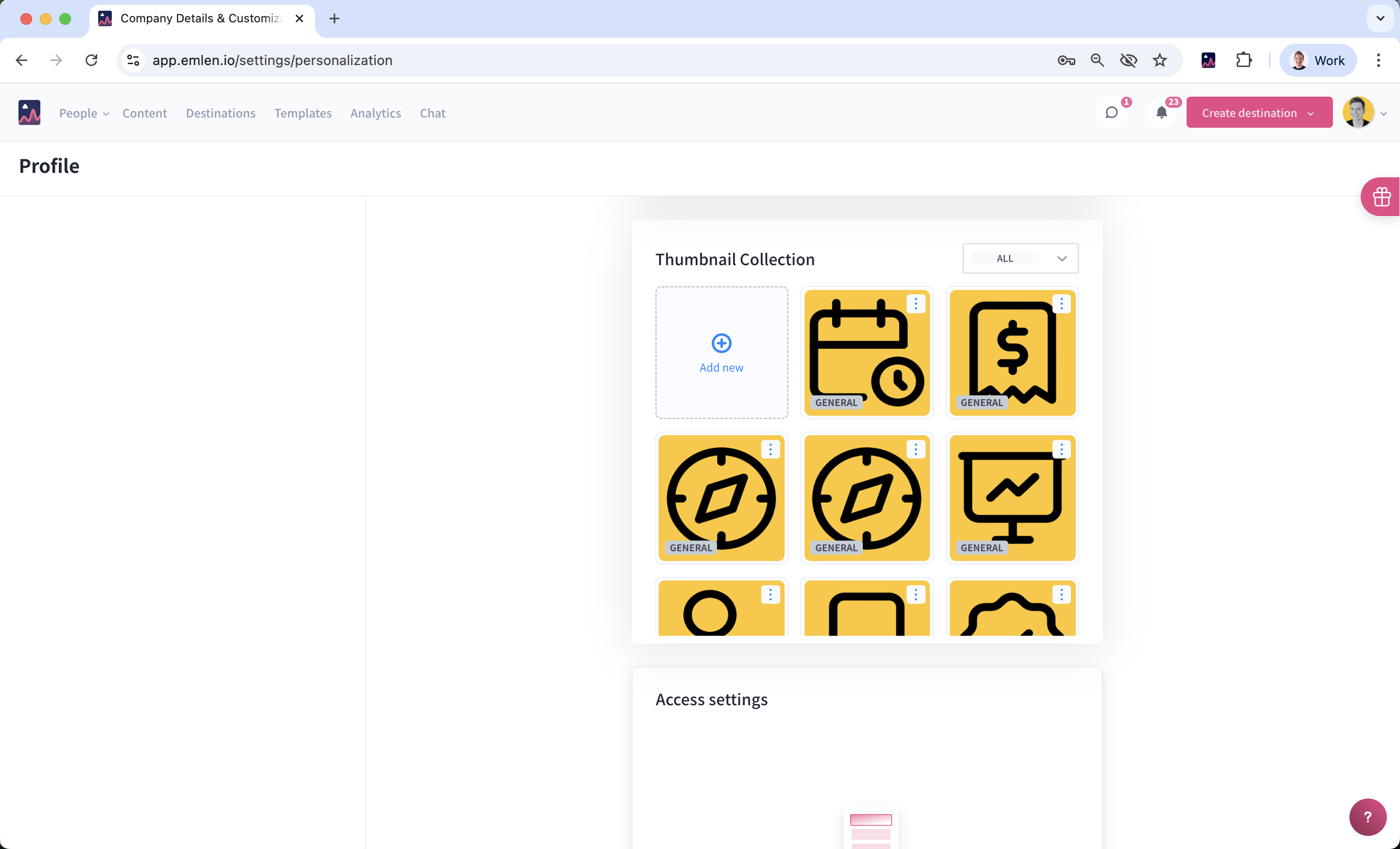 Thumbnails improve the visual appeal of your Destination and help buyers navigate more easily. They appear as icons to the left of your content assets within the Destination.