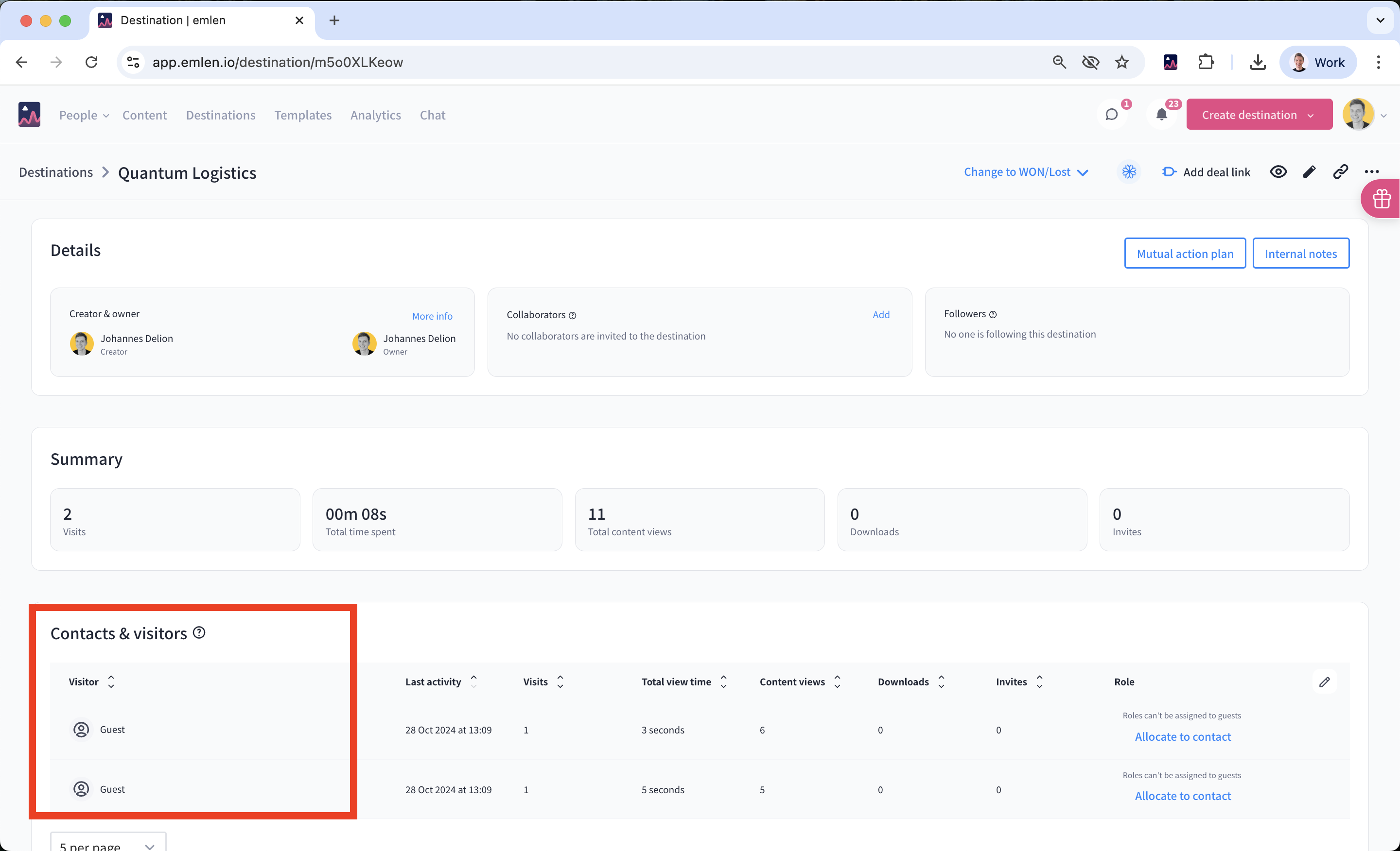 If you choose “Guest access” (which does not require email verification), you will see guest visits: