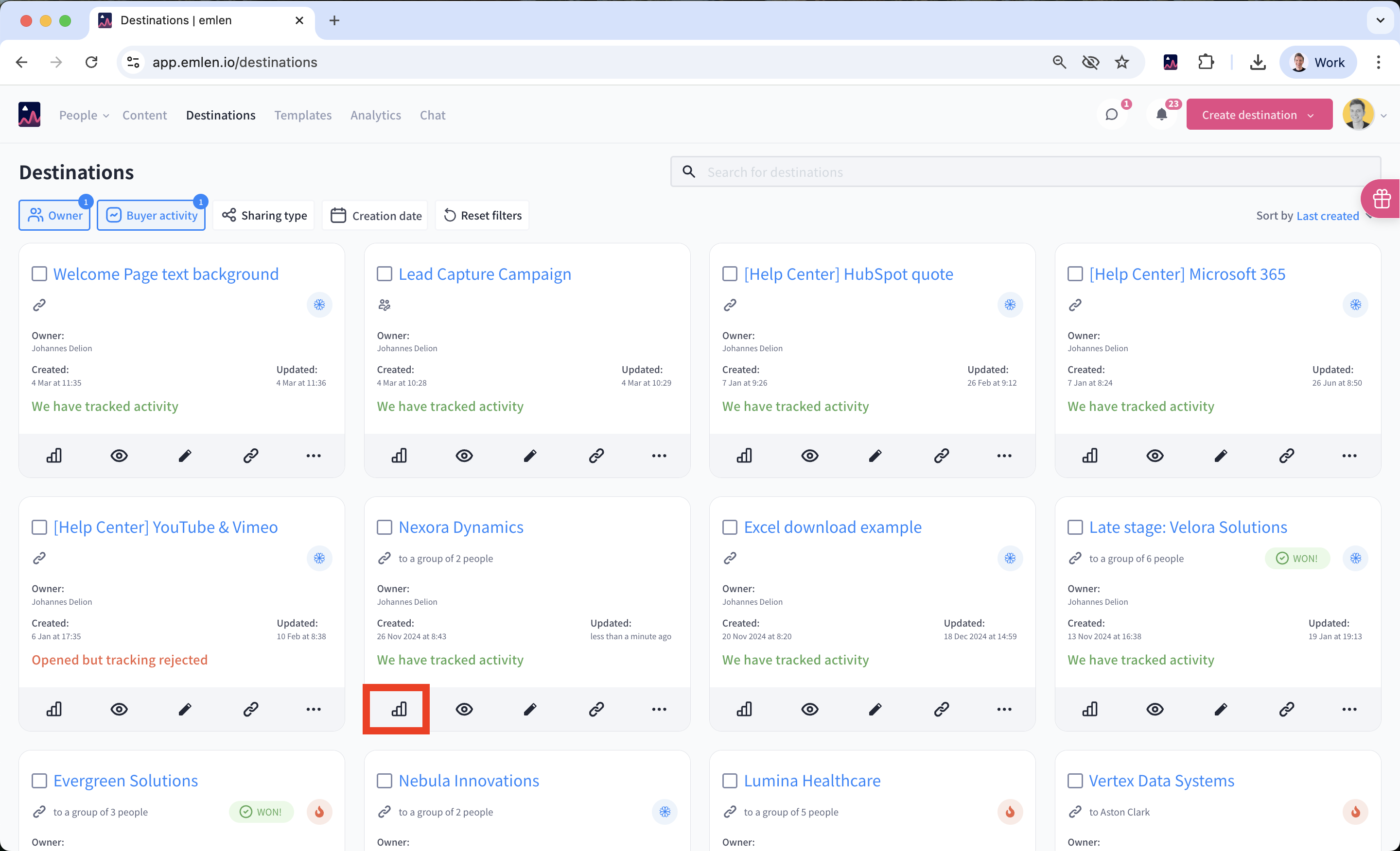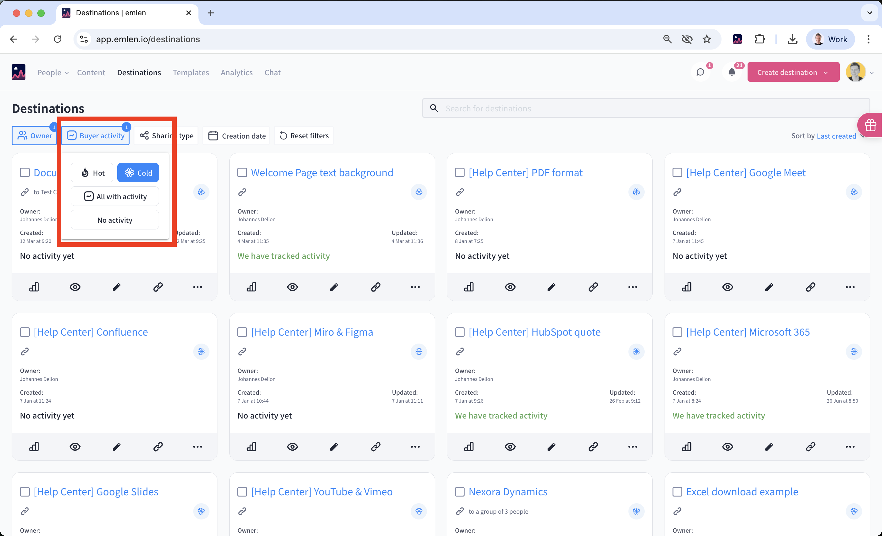 You can filter Destinations based on buyer activity to prioritize your focus. For example, look for: